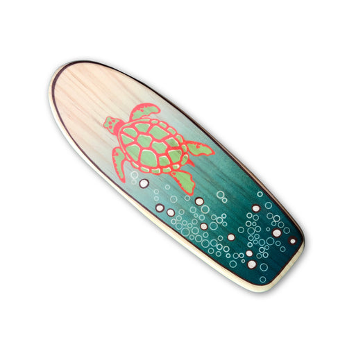 Wooden Surfboard Wall Decor - Board, Mini Longboard Surf Art, Swimming Green Sea Turtle Illustration - Size: Large